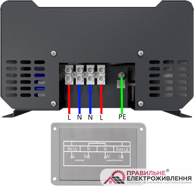 Провести підключення вхідних і вихідних проводів за схемою, зображеною на рисунку 8 (для однофазної мережі), де L - це фазний провід, N - нульовий провід, РЕ - провід заземлення. Для трифазної мережі зробити підключення за схемою, зображеної на рисунку 9, де L 1, L 2, L 3 - фазні проводи, N - нульовий провід, РЕ - провід заземлення. Рекомендовані мінімальні і максимальні перерізи проводів для підключення стабілізатора вказані в технічних характеристиках. Зверніть увагу, підключення стабілізатора робити «в розрив» фазного проводу, 'єднання корпусу стабілізатора з нульовою шиною - ЗАБОРОНЯЄТЬСЯ! При трифазному підключенні захист від неповнофазного режиму в даному стабілізаторі відсутня.